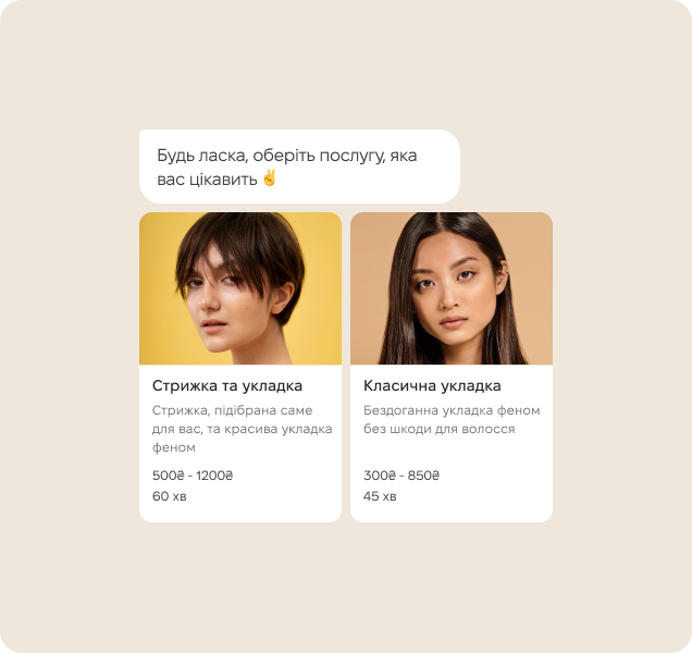Ваші потенційні клієнти зможуть отримувати консультації, записуватися на послуги та проходити всю воронку продажів лише за кілька хвилин завдяки чат-боту, який працює цілодобово.