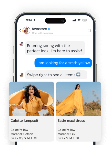 The chatbot will respond in Direct, offering typical questions or services. This simplifies communication and speeds up the sales process.