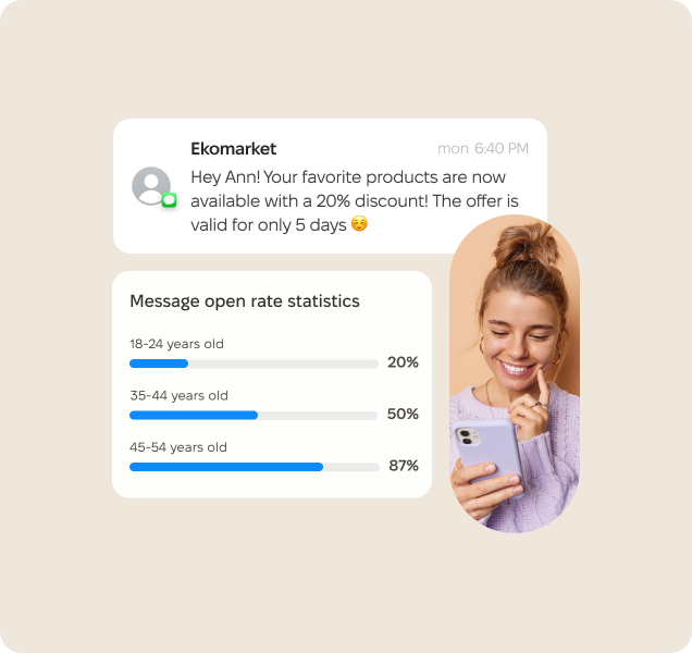 Engage potential customers with targeted SMS messages containing offers, promotions, and other important information.