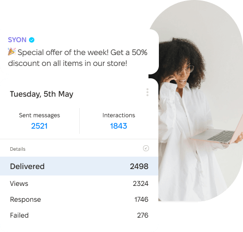 Track the number of messages delivered and read, and much more. This way, you can send messages to those who didn't open the previous campaign and increase sales.