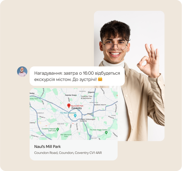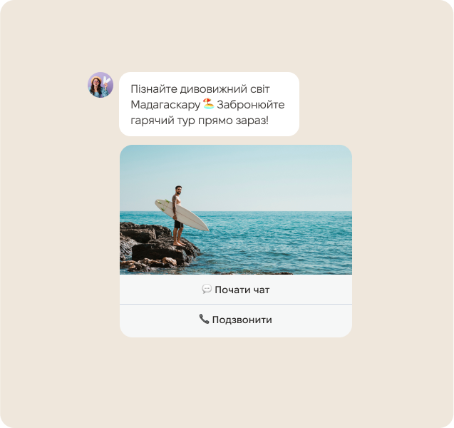 Користувачеві достатньо натиснути кнопку, щоб миттєво зв'язатися з бізнесом, спрощуючи взаємодію та роблячи спілкування легким.