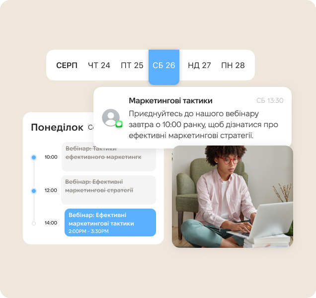 Максимізуйте утримання клієнтів і потоки доходів за допомогою стратегічних кампаній з поновлення підписок, нагадувань про події або візити по запису.