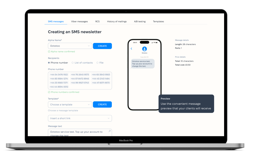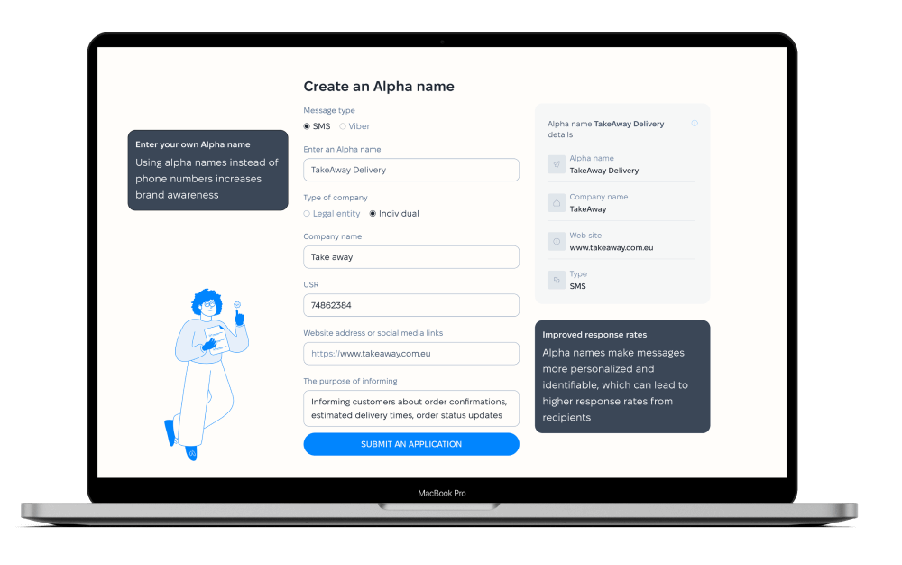 Зареєструйте офіційне альфа-ім'я для бренду. Ми надаємо повний супровід процесу верифікації.